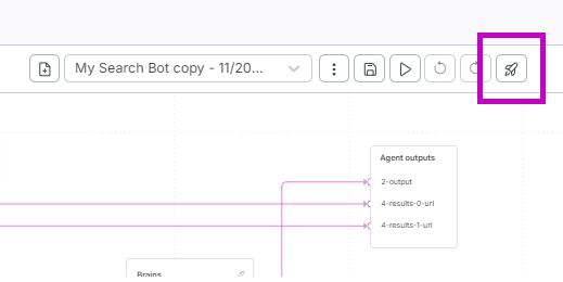 1. Create an agent with desired Inputs, Outputs, and processing nodes. Deploy it to the cloud by pressing a button.